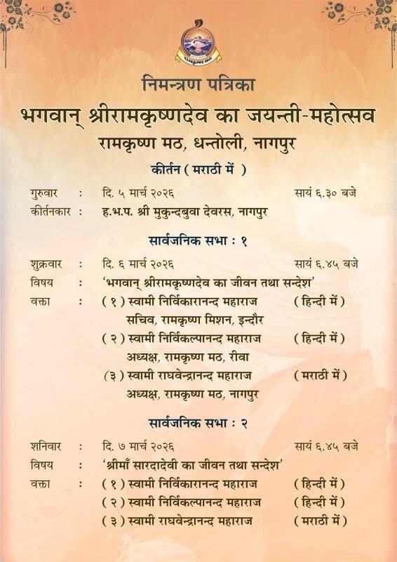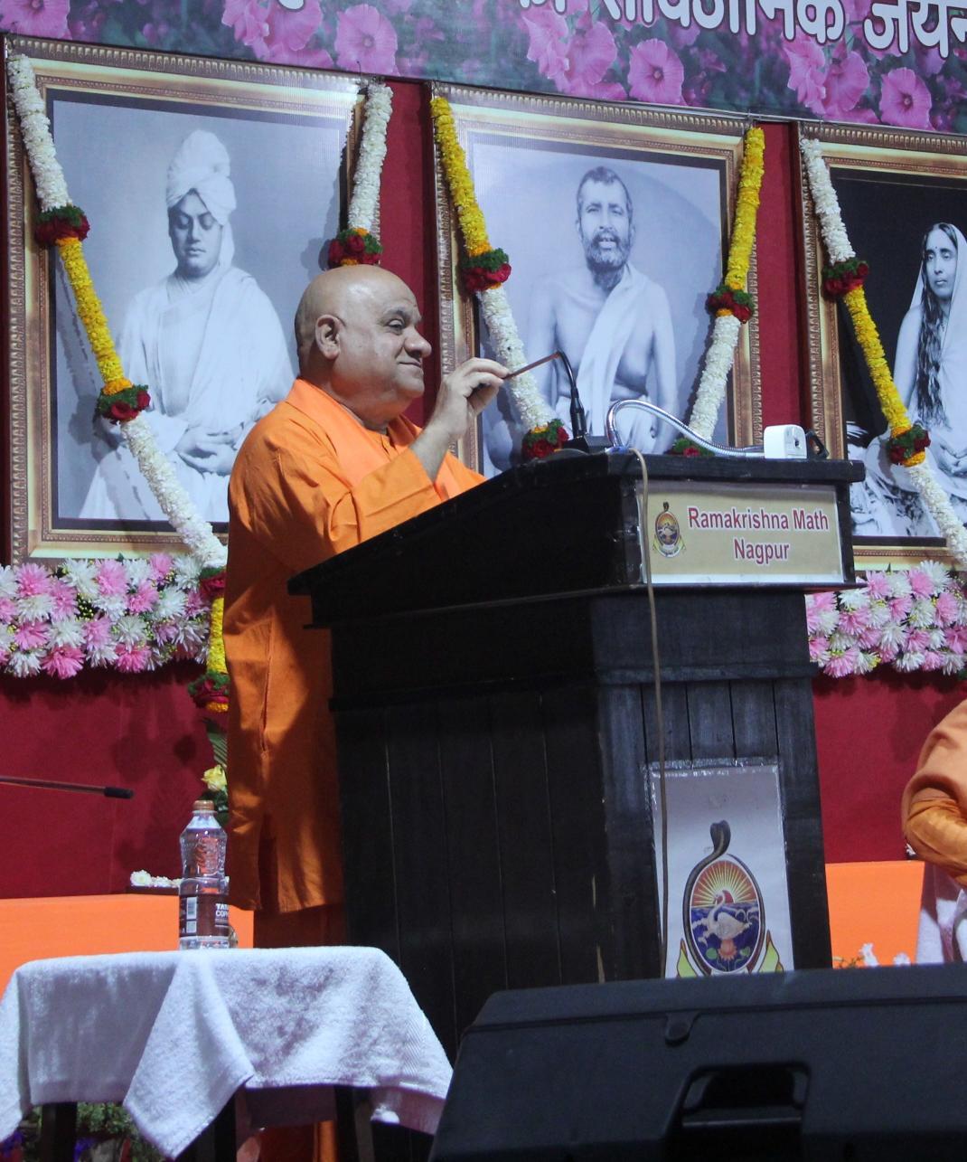 The discourses were delivered by distinguished monks: Swami Nirvikalpanandaji Maharaj (Adhyaksha, Ramakrishna Math, Rewa), Swami Nirvikaranandaji Maharaj (Secretary, Ramakrishna Mission, Indore), and Swami Raghavendranandaji Maharaj (Adhyaksha, Ramakrishna Math, Nagpur). Each speaker brought their unique perspective and deep spiritual insight, eloquently highlighting various facets of the lives of Sri Ramakrishna, Sri Maa Sarada Devi, and Swami Vivekananda.