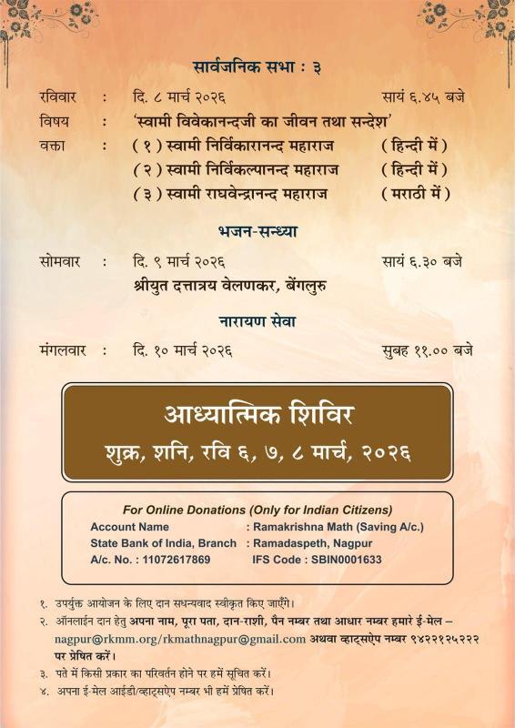 From March 6 to 8, 2026, a series of three public meetings was organized to celebrate and reflect upon the lives, teachings, and spiritual legacy of Bhagavan Sri Ramakrishna, Sri Maa Sarada Devi, and Swami Vivekananda. These gatherings provided a unique opportunity for devotees and attendees to gain a deeper understanding of the guiding principles, moral values, and spiritual wisdom imparted by the Holy Trio.